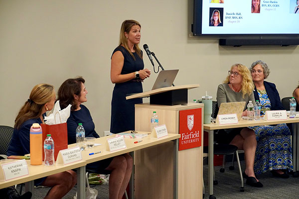 Though the panel discussion was not necessarily held in support of the new textbook, whose contributors include 18 Fairfield affiliates, the panelists were clearly proud of the publication and their involvement in the project. For Roney and others, it is the book they wish they had at the start of their nursing careers