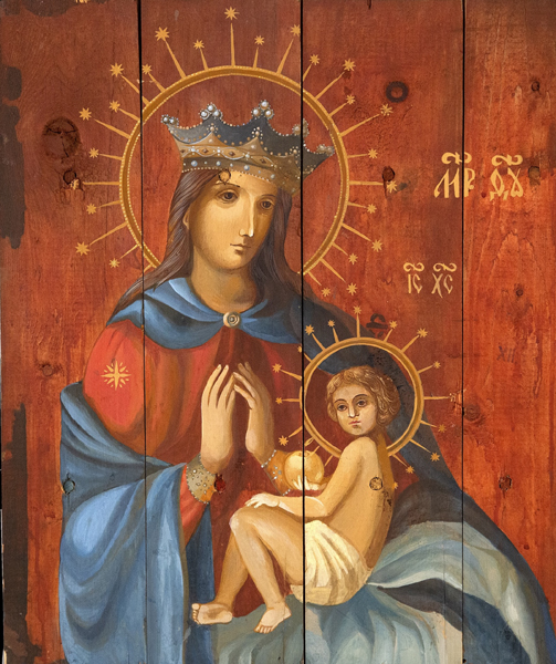 The exhibition also features a 2025 Marian series dedicated to Ukrainian children held in Russian captivity, as well as newly created works including an icon of St. Ignatius of Loyola made specifically for the Fairfield showing. Another highlight includes an icon of the Mother of God with Child that was presented to Pope Leo XIV by Ukraine’s president and first lady.
